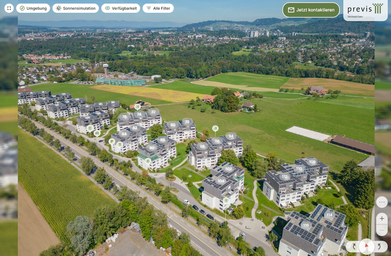 Der Navigator visualisiert Wohnsiedlungen dreidimensional. Mit nur einem Klick erhalten Sie wichtige Informationen zum Mietobjekt und zur Umgebung.