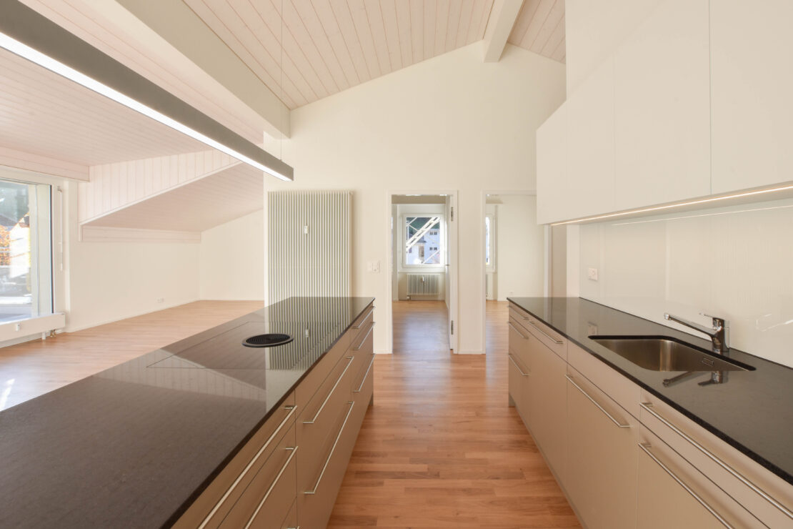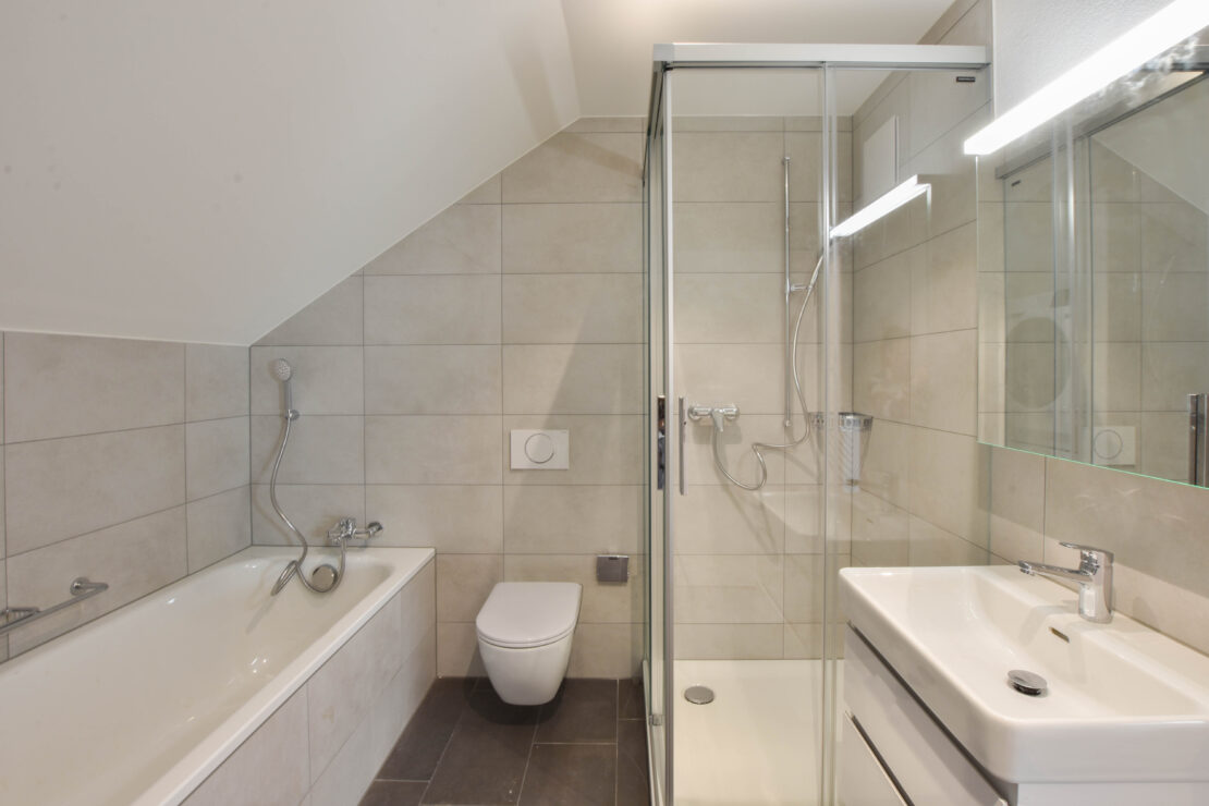 Die ehemaligen Büroräume im 1. Obergeschoss werden zu Wohnungen umgebaut, die Grundrisse der bisherigen Wohnungen werden grösstenteils belassen und teils optimiert. Die Duschen werden mit einer praktischen Glastrennwand ausgestattet. Die meisten Wohnungen erhalten einen eigenen Waschturm im Badezimmer.