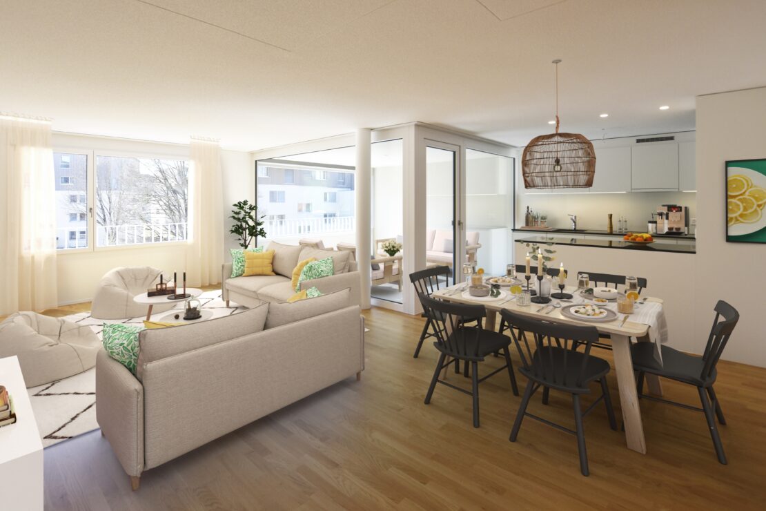 Durch eine Aufstockung und Verdichtung der bestehenden Gebäude entstehen zusätzlich 70 Wohnungen. Insgesamt werden von der Previs 187 Wohnungen angeboten. Die Wohnungen verfügen über grosszügige Grundrisse, viel Tageslicht und einem modernen Ausbaustandard. Schön gestaltete Spielplätze und Spielwiesen laden Kinder und Eltern zum Verweilen ein.