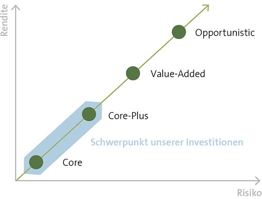 - Unser Anlagestil basiert auf einem ausgewogenen Rendite-/Risikoprofil. Dabei setzen wir auf Stabilität, mit einem substanziell hohen Anteil Wohnimmobilien.